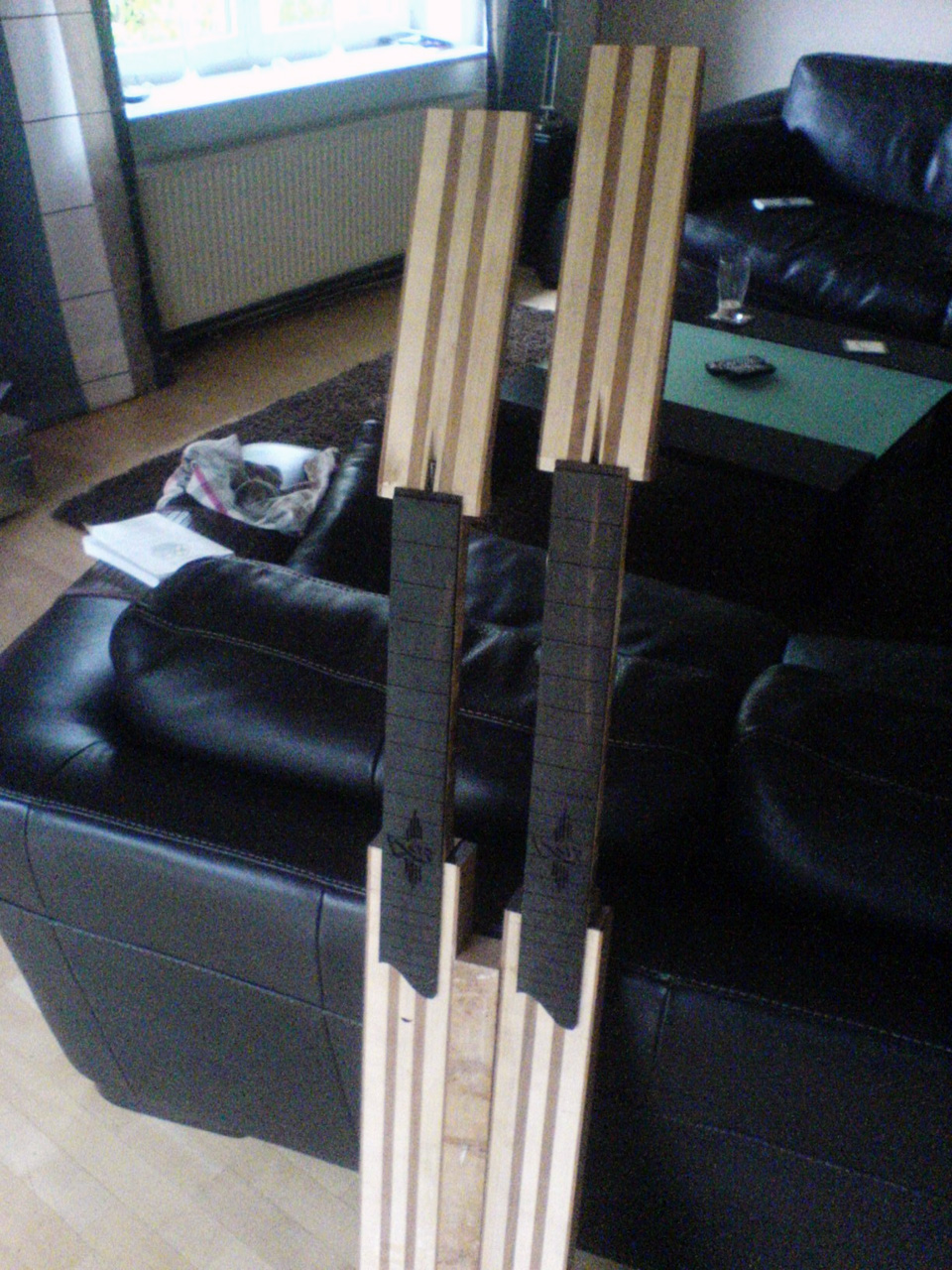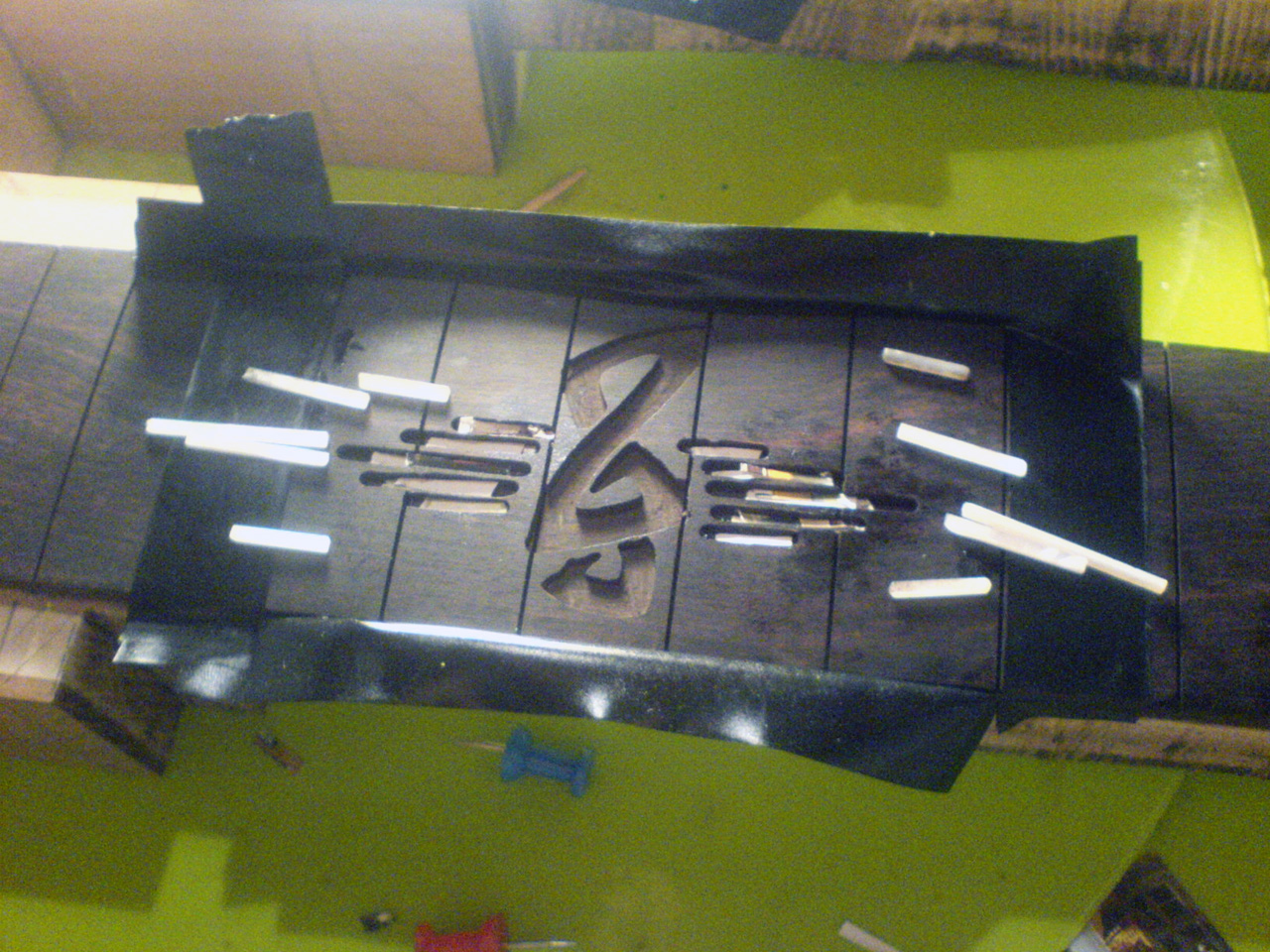 Da ich gestern direkt noch die Wölbung der Griffbretter fertiggestellt hab und heute keine Lust auf kalte Werkstatt hatte, gings - endlich - den Inlays an den Kragen.