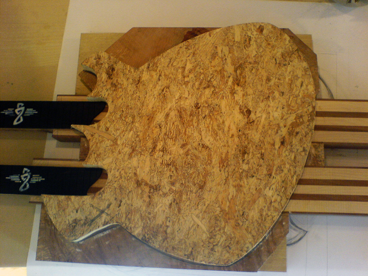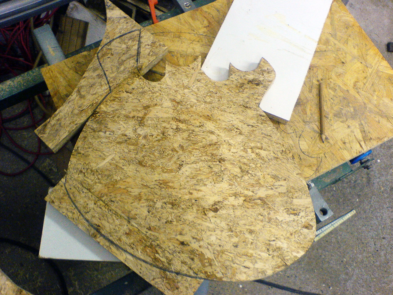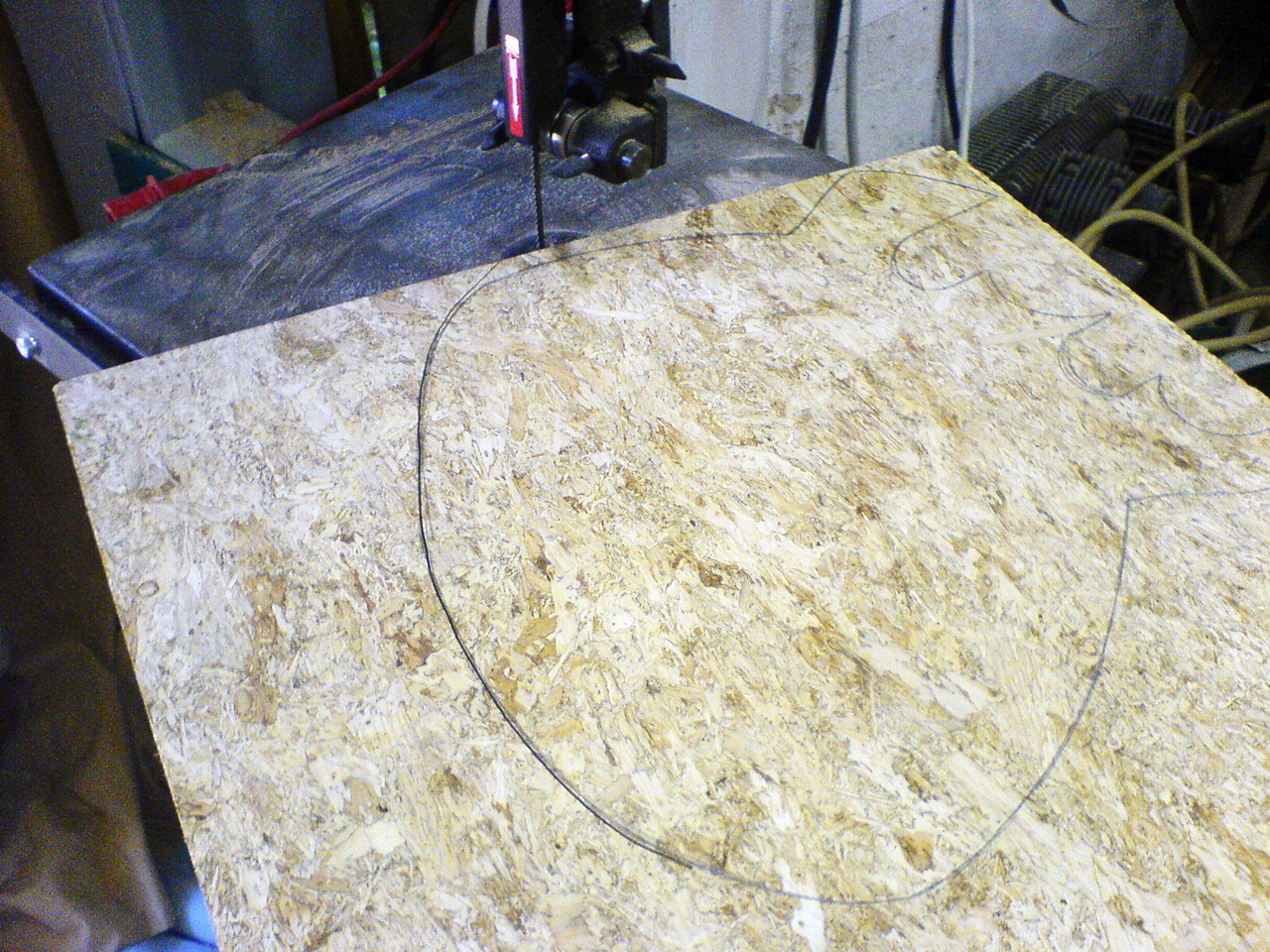 Ich wollte die Schablone fürs Korpusfräsen machen. Dabei reisst mir erstmal das Bandsägeblatt und dann verfeil ich Depp mich auch noch an 2 Stellen!